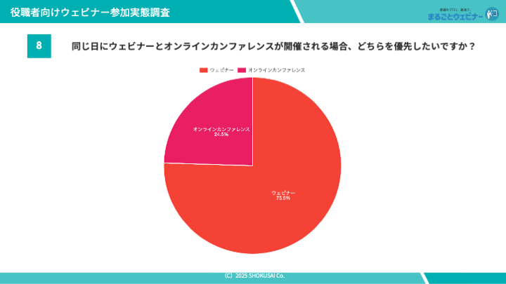 - Q8:同じ日にウェビナーとオンラインカンファレンスが開催される場合、どちらを優先したいですか?