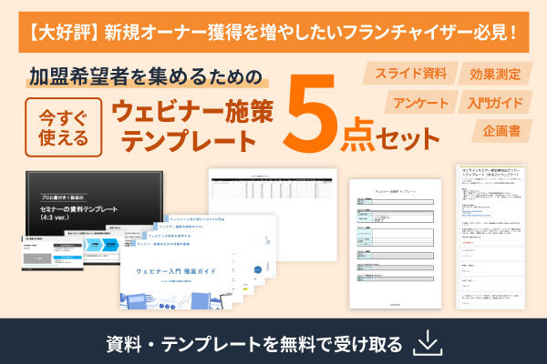 【お役立ち資料】「フランチャイザー必見!加盟希望者を集めるためのウェビナー施策 5点セット」資料・テンプレート
